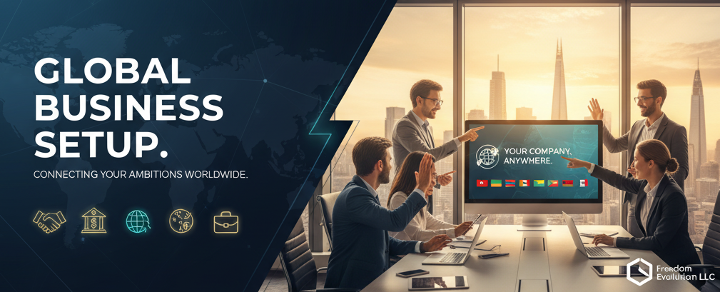 Dreaming of launching your business on an international stage? At Freedom Evolution LLC., we turn your global ambitions into reality. Our comprehensive Global Business Setup services provide everything you need to establish and grow your enterprise in key economic hubs worldwide. From company registration and legal compliance to strategic market entry, we offer seamless support, allowing you to focus on evolution and financial freedom .